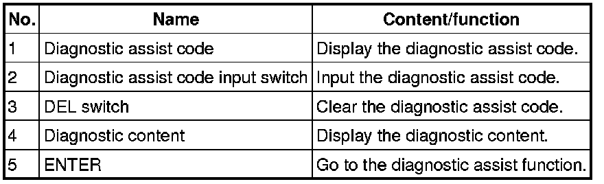 1. Press the "Diagnostic assist code input switch", and input the diagnostic assist code "01".