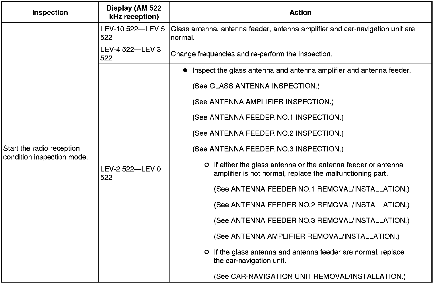 - Even if the system is normal, radio reception may be difficult depending on where the system is inspected (indoors/outdoors, or conditions at the location). Before inspecting the system, verify that radio reception is adequate.