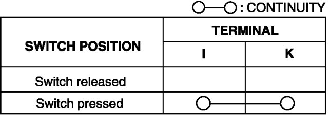 3. Verify that the continuity between the INFO switch terminals is as indicated in the table.
