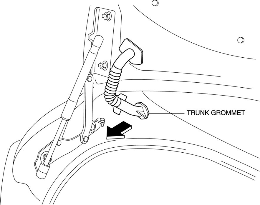 3. Remove the trunk grommet in the direction of arrow shown in the figure.