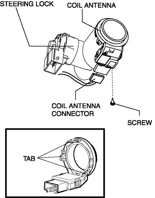 5. Detach the coil antenna hooks and remove the coil antenna from the steering lock.