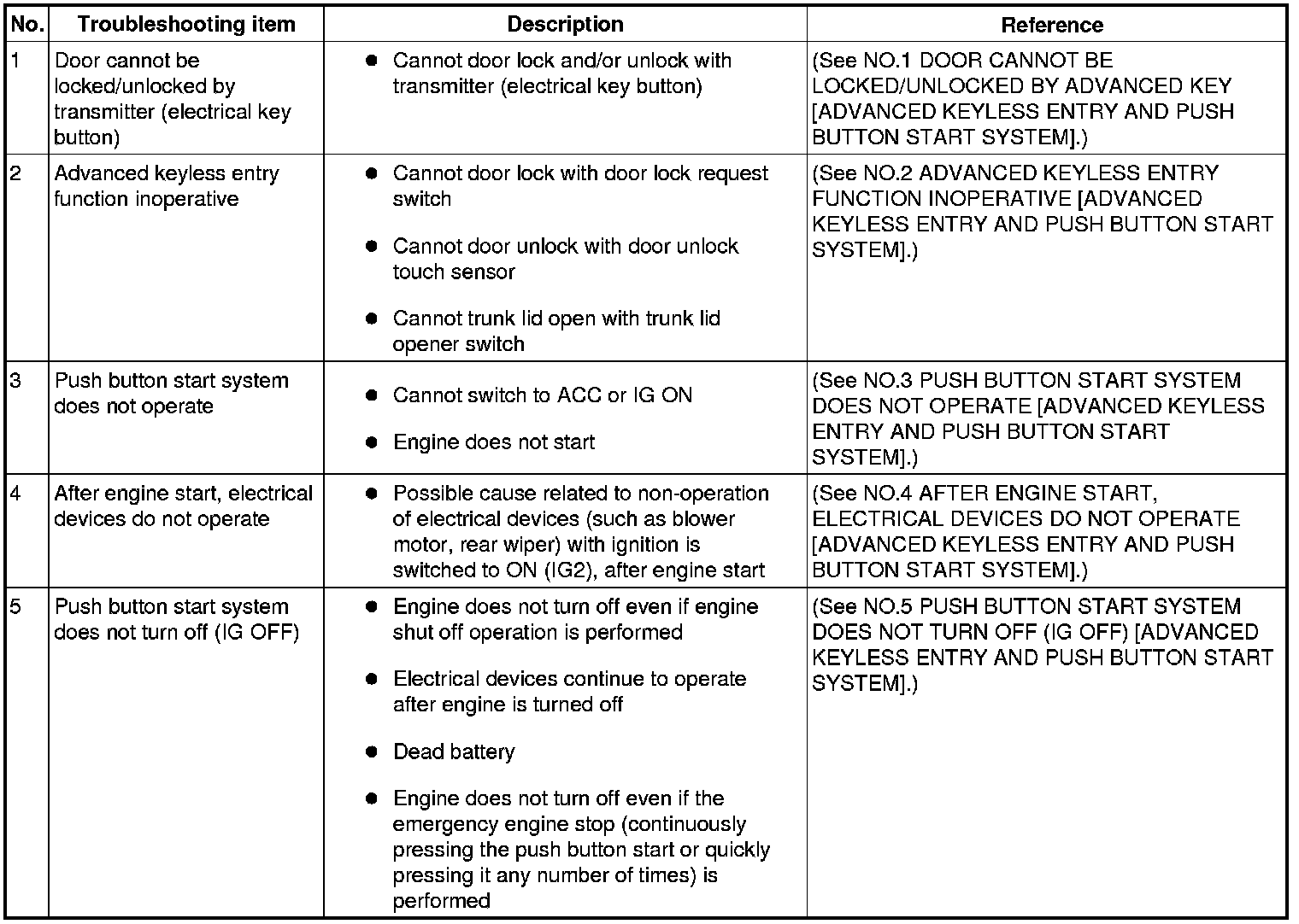 SYMPTOM TROUBLESHOOTING CHART [ADVANCED KEYLESS ENTRY AND PUSH BUTTON START SYSTEM]