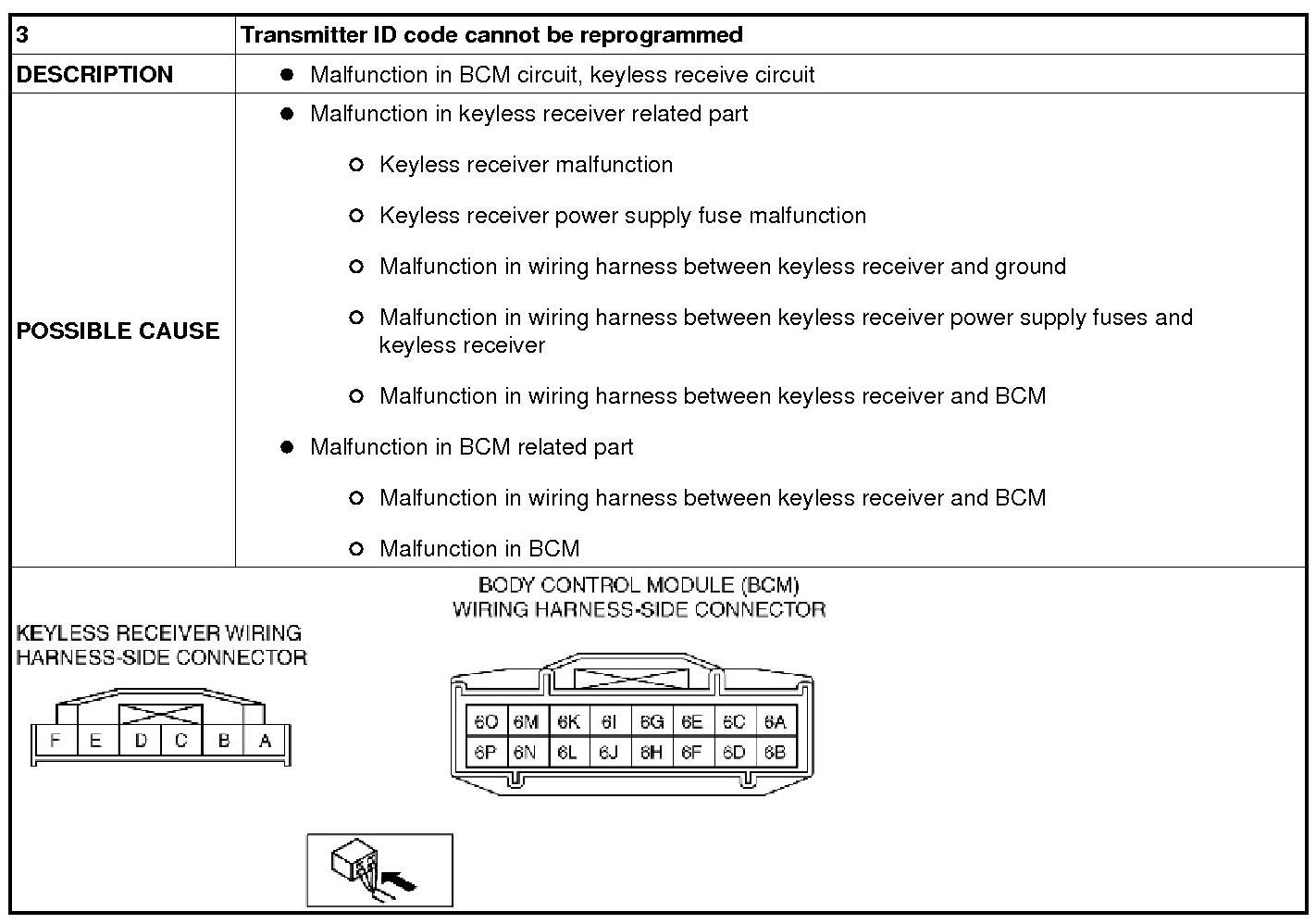 NO.3 TRANSMITTER ID CODE CANNOT BE REPROGRAMMED [KEYLESS ENTRY SYSTEM]