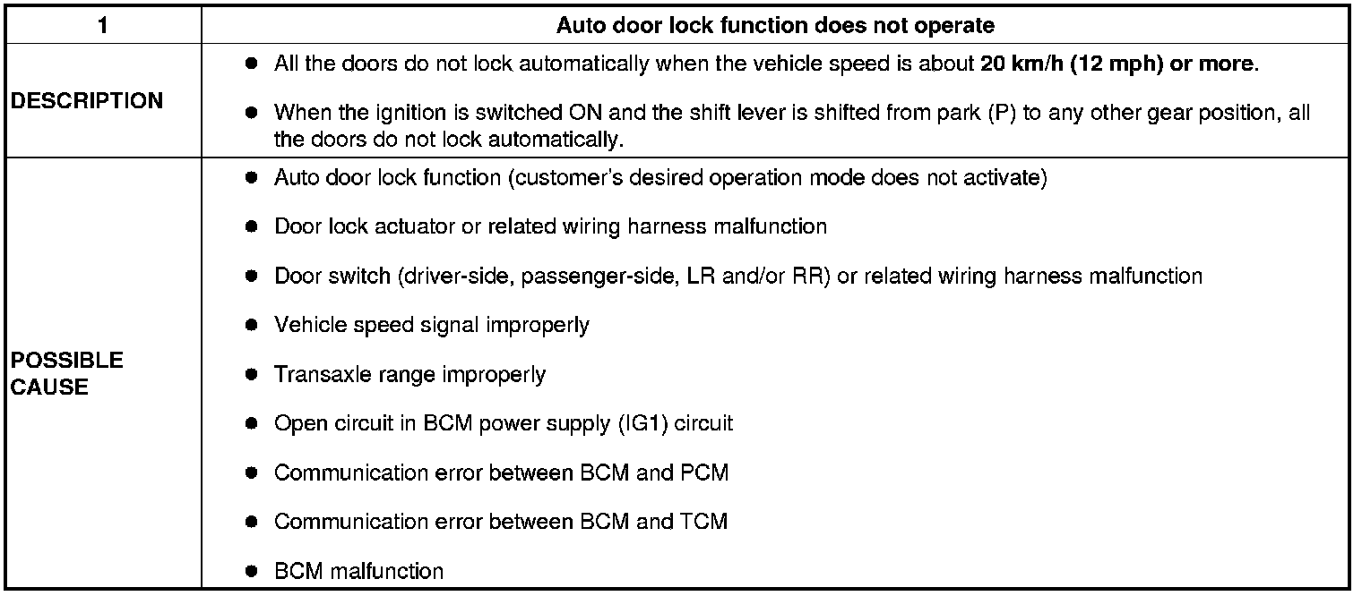 No. 1 Auto Door Lock Function Does Not Operate