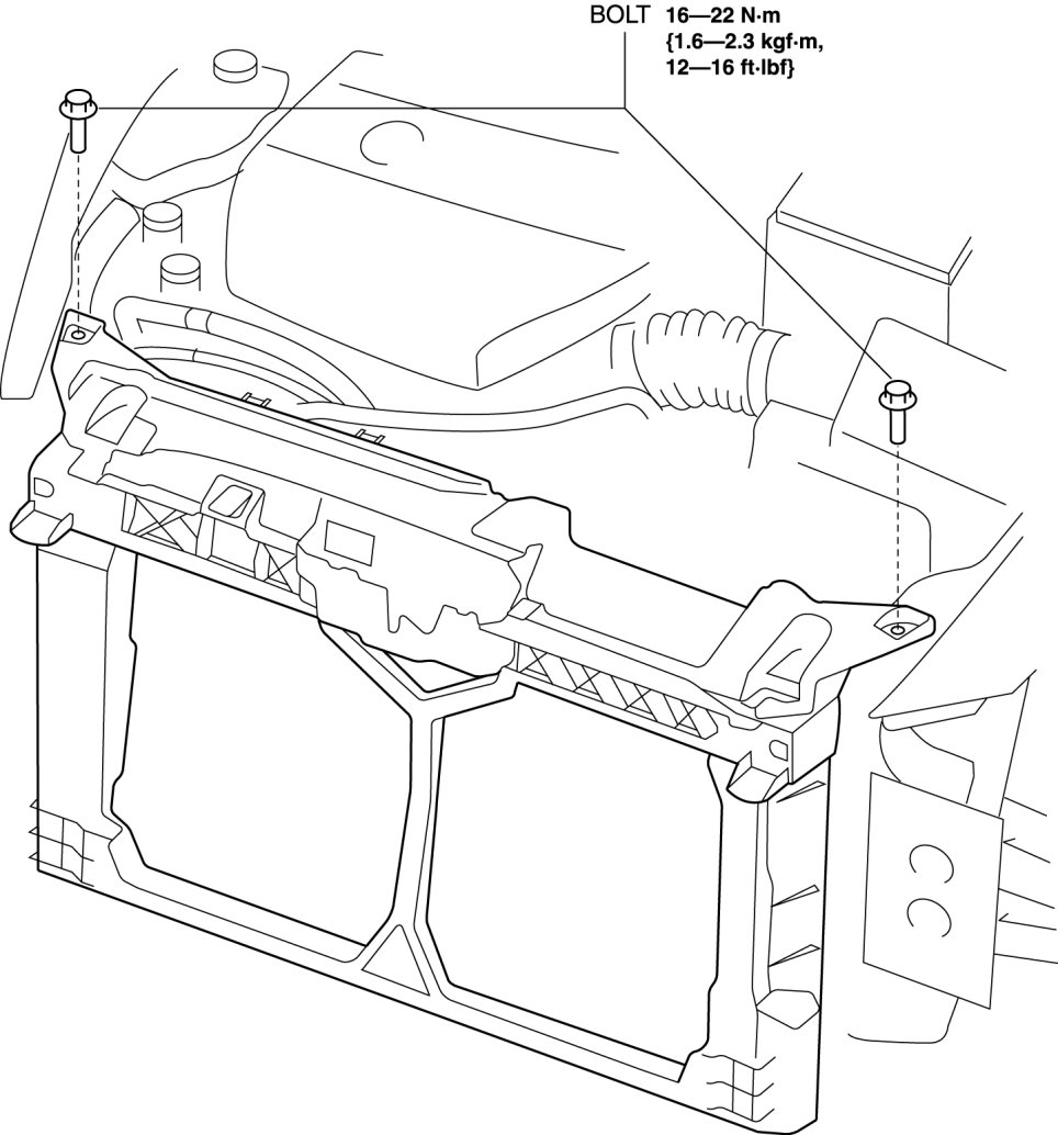 - Because the shroud panel is installed to the bumper reinforcement, support the shroud panel using a jack before removing the bumper reinforcement so as not to apply excessive force to the shroud panel.