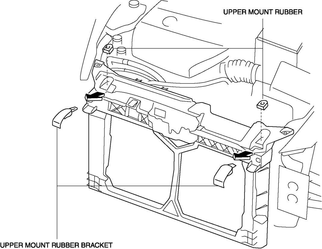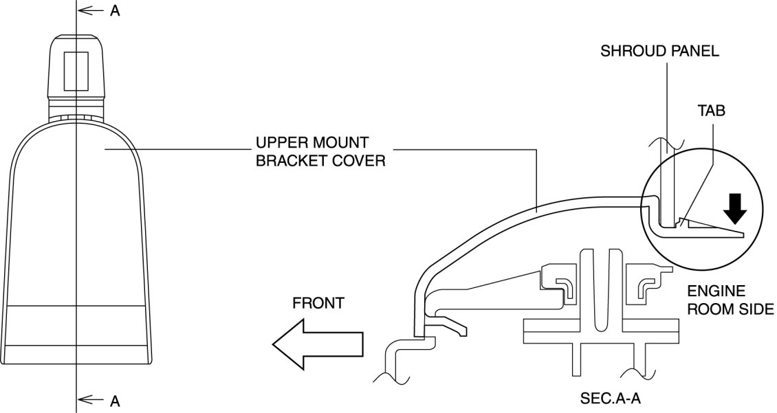 1. Remove the upper mount rubber bracket while pressing down the upper mount rubber bracket tab in the direction of the arrow in the figure.