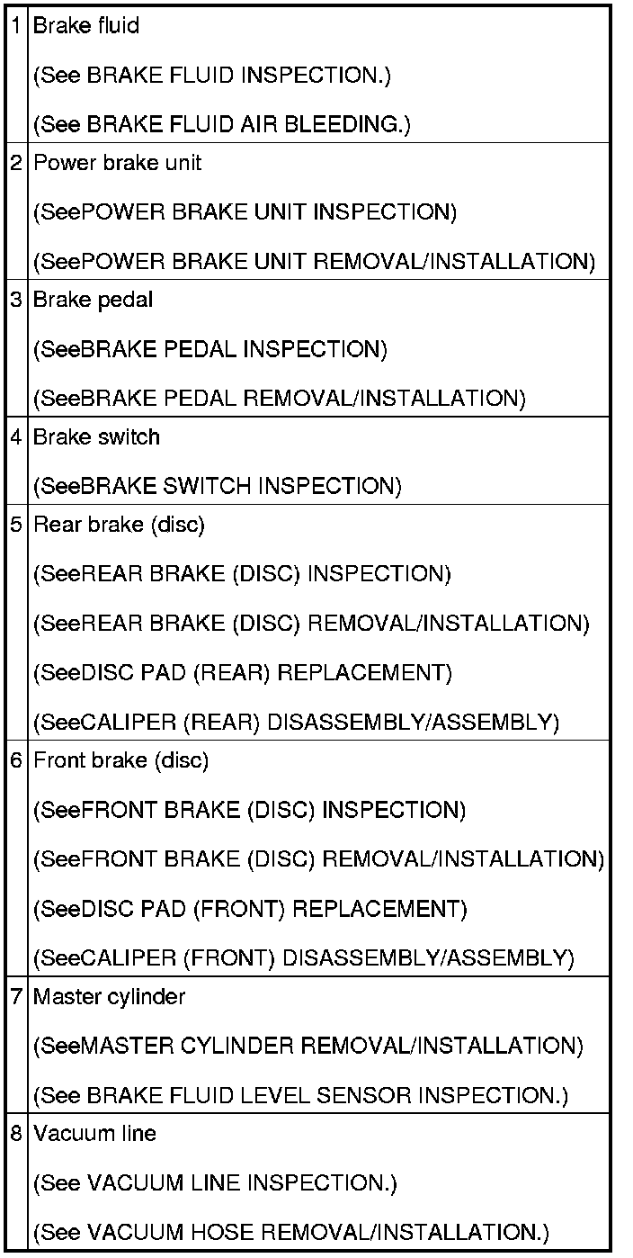 CONVENTIONAL BRAKE SYSTEM LOCATION INDEX