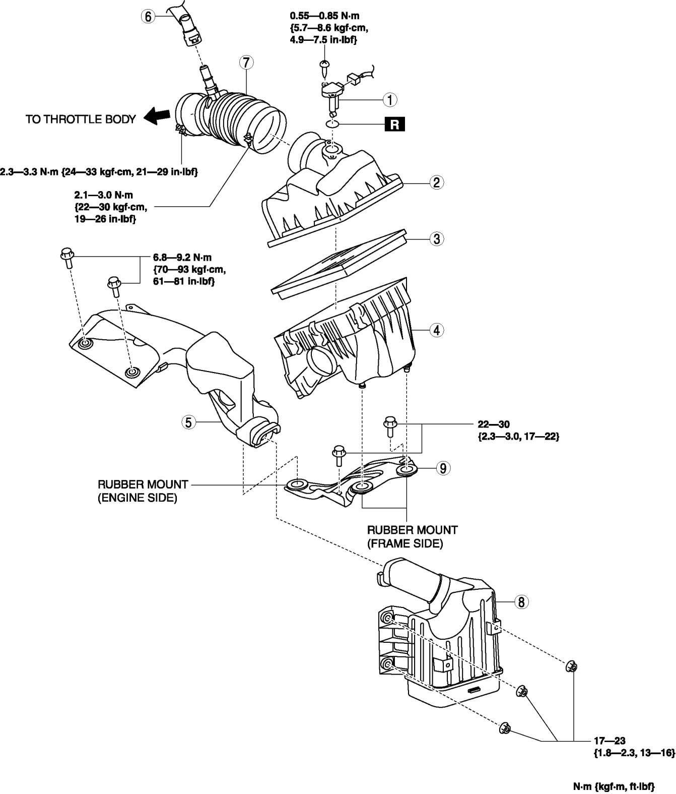 - 8-11 Nm {82-112 kgf-cm, 71-97 in-lbf}
