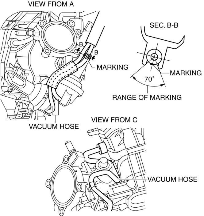 4. Disconnect the vacuum hoses connecting the intake manifold.