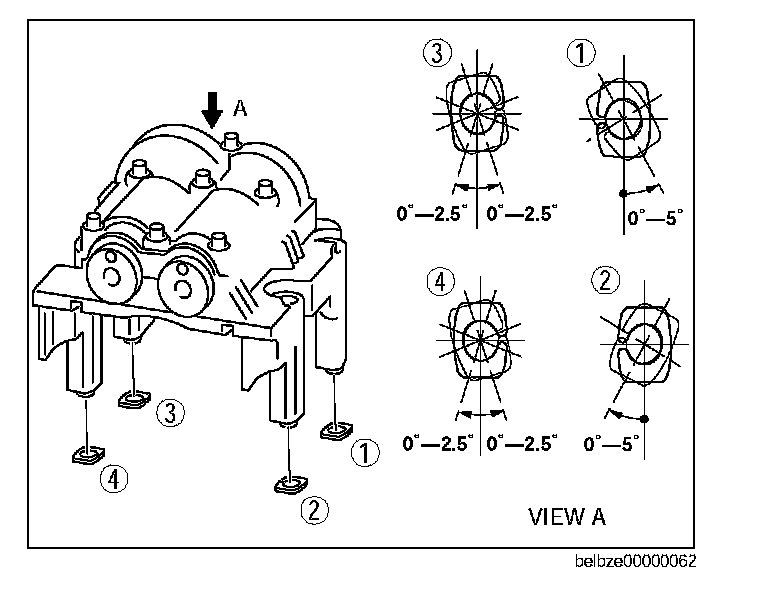 10. Remove the master shim from the balancer unit and assemble the selected adjustment shim at the angles shown in the figure.