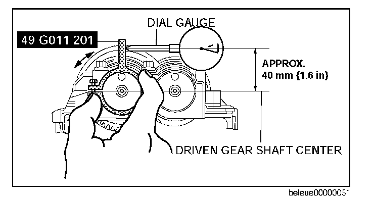 12. Verify that the measured backlash is within the specified range. If the backlash exceeds the maximum specification, replace the adjustment shim and repeat Steps 4-12.