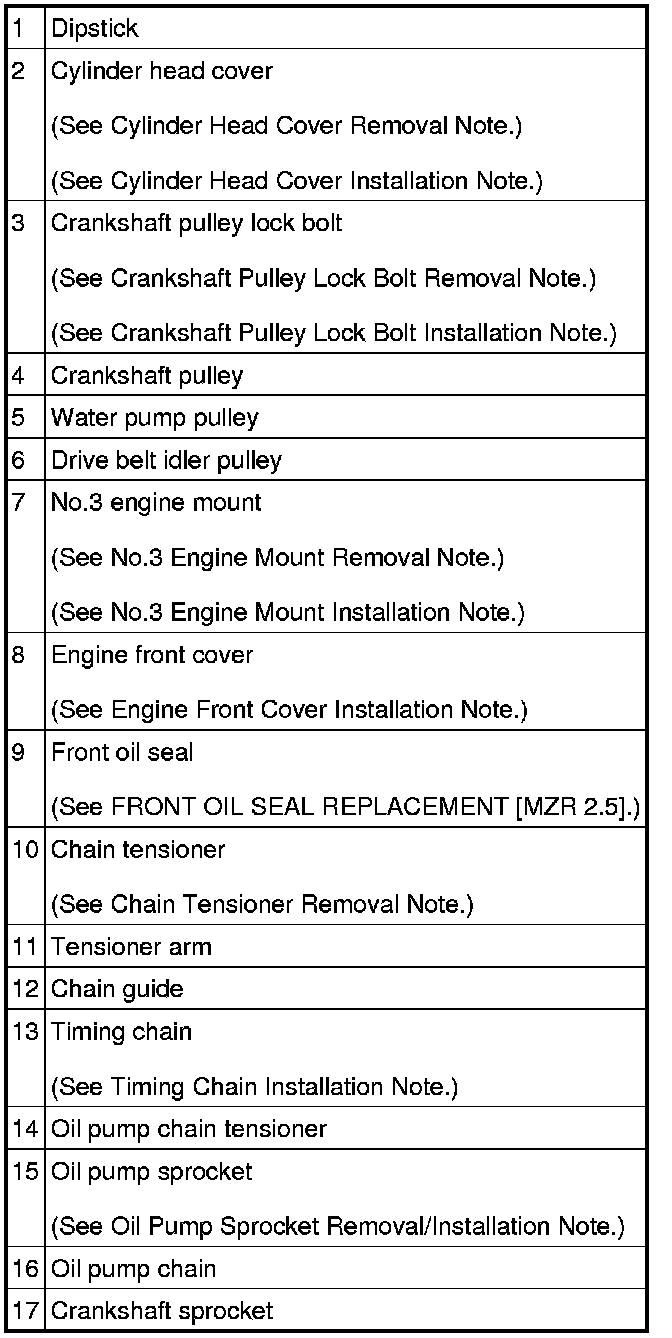 TIMING CHAIN REMOVAL/INSTALLATION [MZR 2.5]
