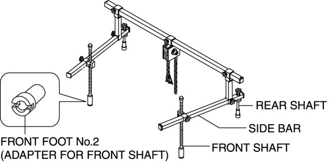 b. Install front foot No.2 to the left/right front shaft of the SST, then align the groove of the front shaft of the SST with the folded up part of the vehicle as shown in the figure.
