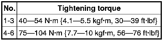 - 96-104 Nm {9.8-10 kgf-m, 71-76 ft-lbf}