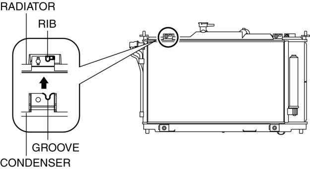 1. Align the bracket groove of the condenser to the radiator positioning rib.