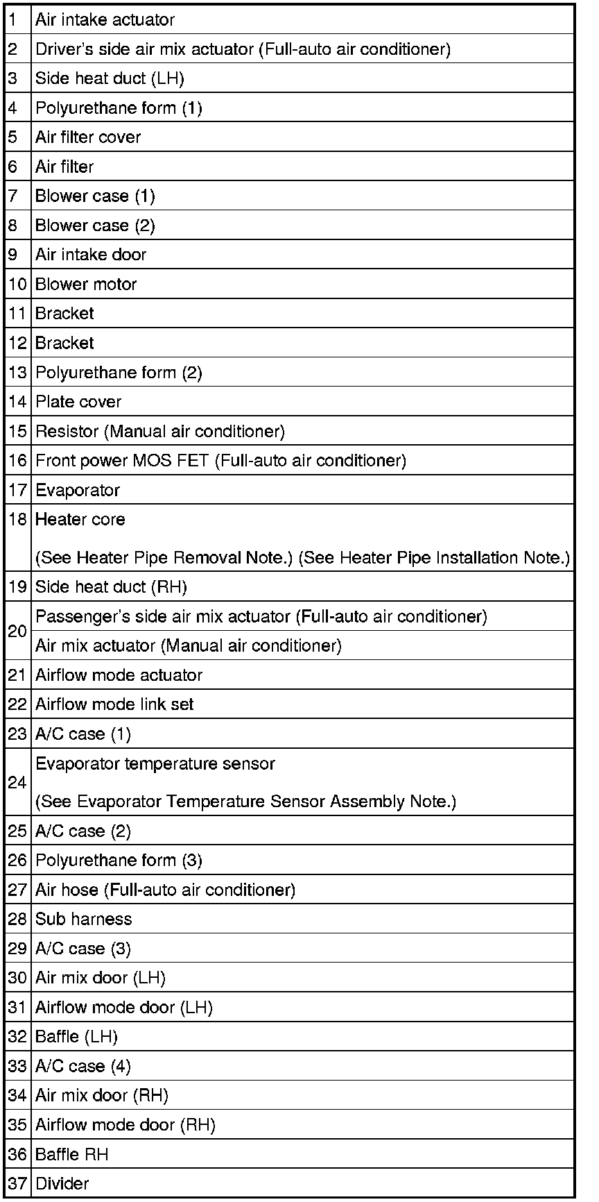4. Remove the heater pipe and pull the heater core outward and remove it.