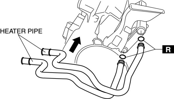 1. Set assemble heater pipes as shown in the figure and then set it to the heater core.