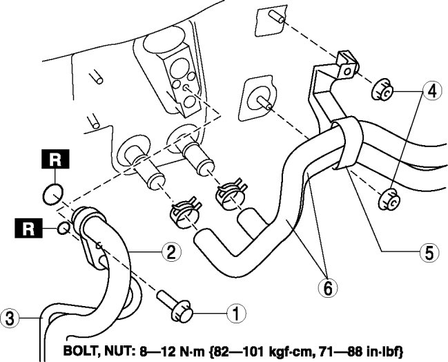5. Disconnect from A/C unit in the order indicated in the table. Do not allow compressor oil to spill.