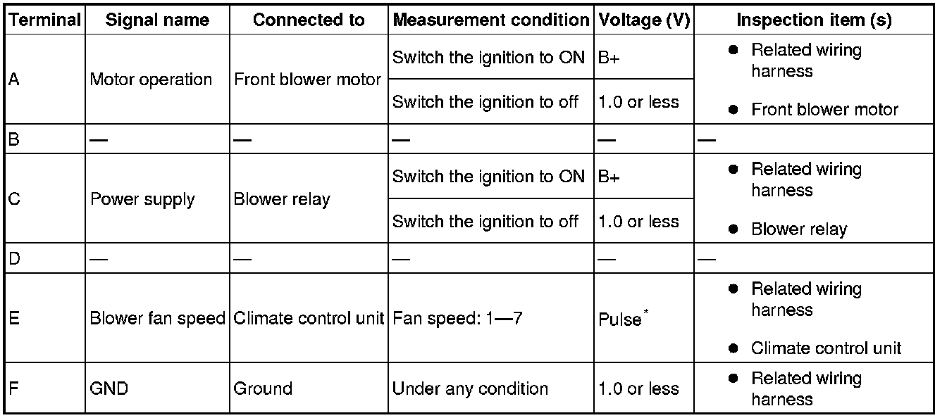 Refer to climate control unit terminal 1I (figure 1).
