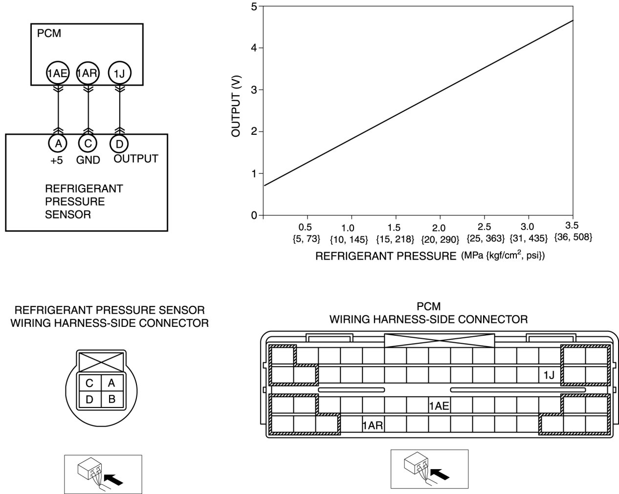 - If wiring harness is normal, replace the refrigerant pressure sensor.