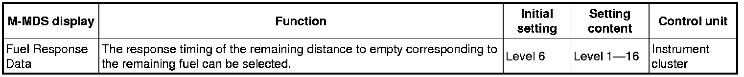 - The M-MDS screen displays the following items, however, do not change the setting. If the setting is changed, a difference occurs between the instrument cluster indication and actual fuel level leading to unexpected fuel shortage.