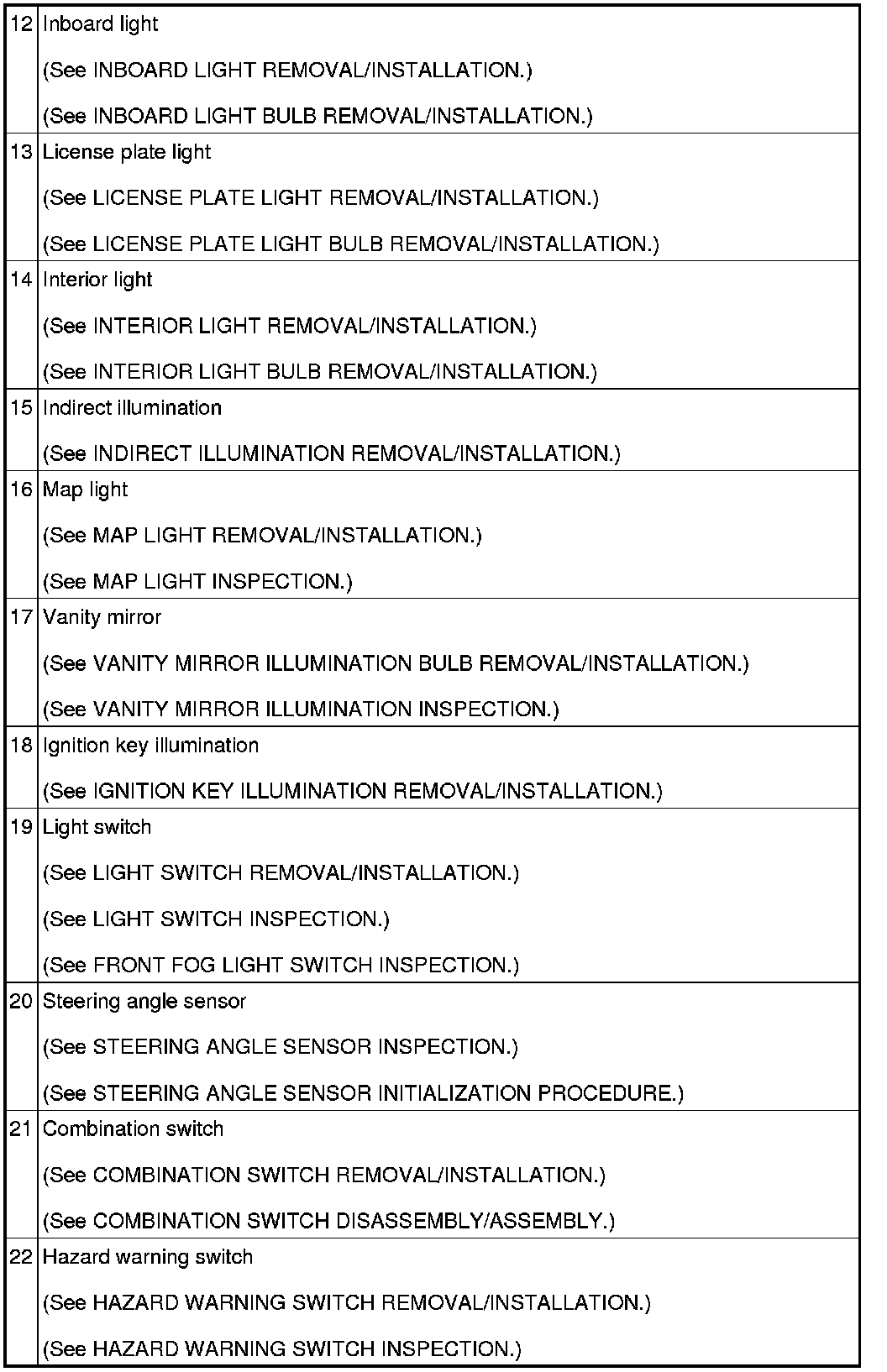 LIGHTING SYSTEMS LOCATION INDEX