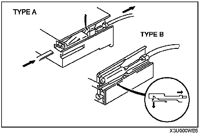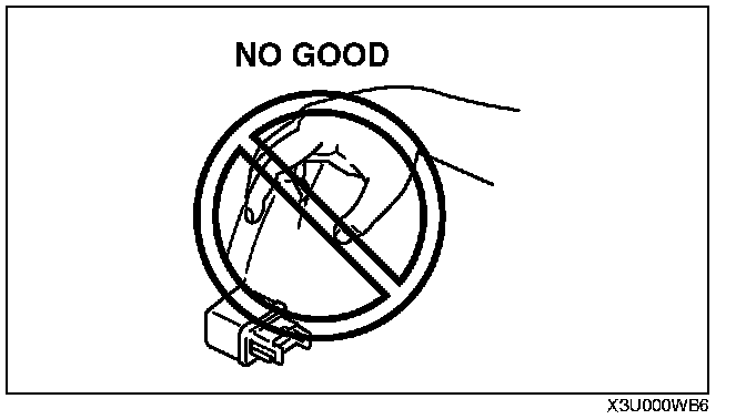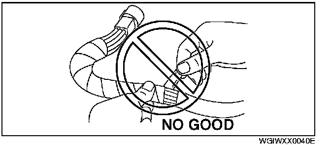 - When a tester is used to inspect for continuity or measuring voltage, insert the tester probe from the wiring harness side.