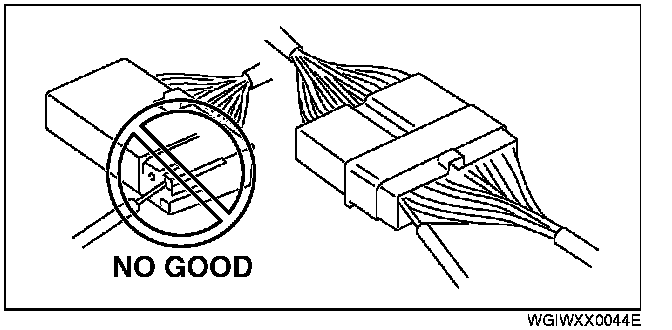 - Inspect the terminals of waterproof connectors from the connector side since they cannot be accessed from the wiring harness side.