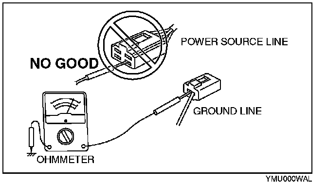 CAUTION: Do not connect the ohmmeter to any circuit where voltage is applied. This will damage the ohmmeter.