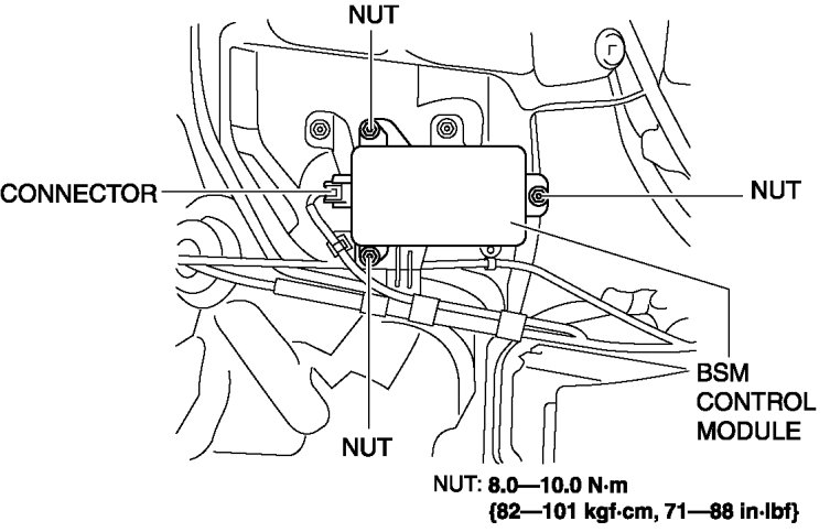 - If the BSM control modules are installed with the left and right modules reversed, a DTC will be displayed and system will enter the fail-safe function. Therefore, confirm that the left/right BSM control modules are installed correctly.