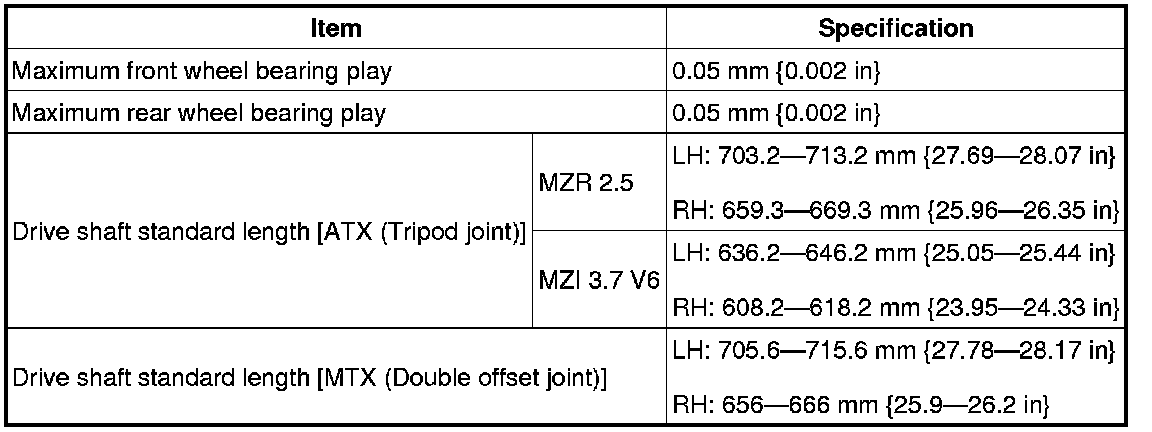 DRIVELINE/AXLE TECHNICAL DATA