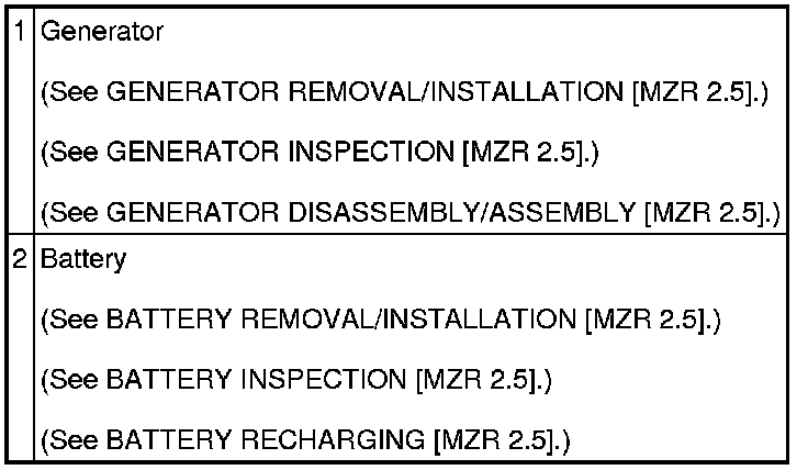 CHARGING SYSTEM LOCATION INDEX [MZR 2.5]