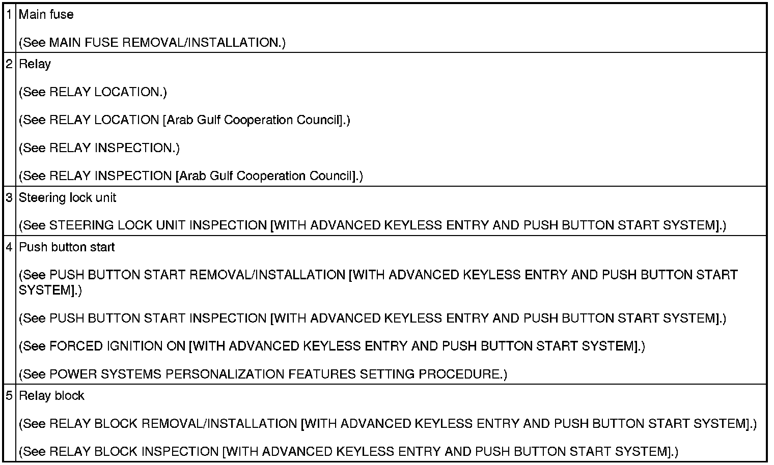 POWER SYSTEM LOCATION INDEX [WITH ADVANCED KEYLESS ENTRY AND PUSH BUTTON START SYSTEM]