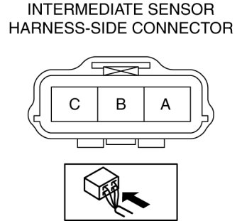 b. Measure the voltage at intermediate sensor connector terminal C (harness-side).