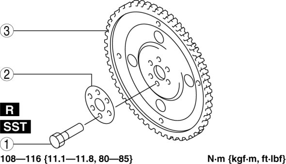 - 108-116 Nm {11.1-11.8 kgf-m, 80-85 ft-lbf}