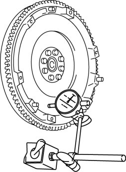 3. Measure the runout of the surface that contacts the clutch disc using a dial gauge.