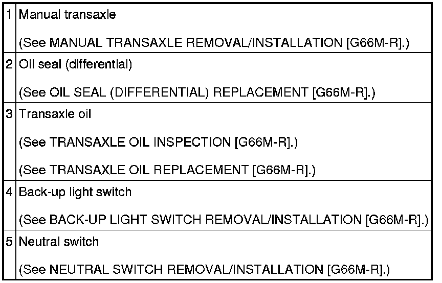 MANUAL TRANSAXLE LOCATION INDEX [G66M-R]