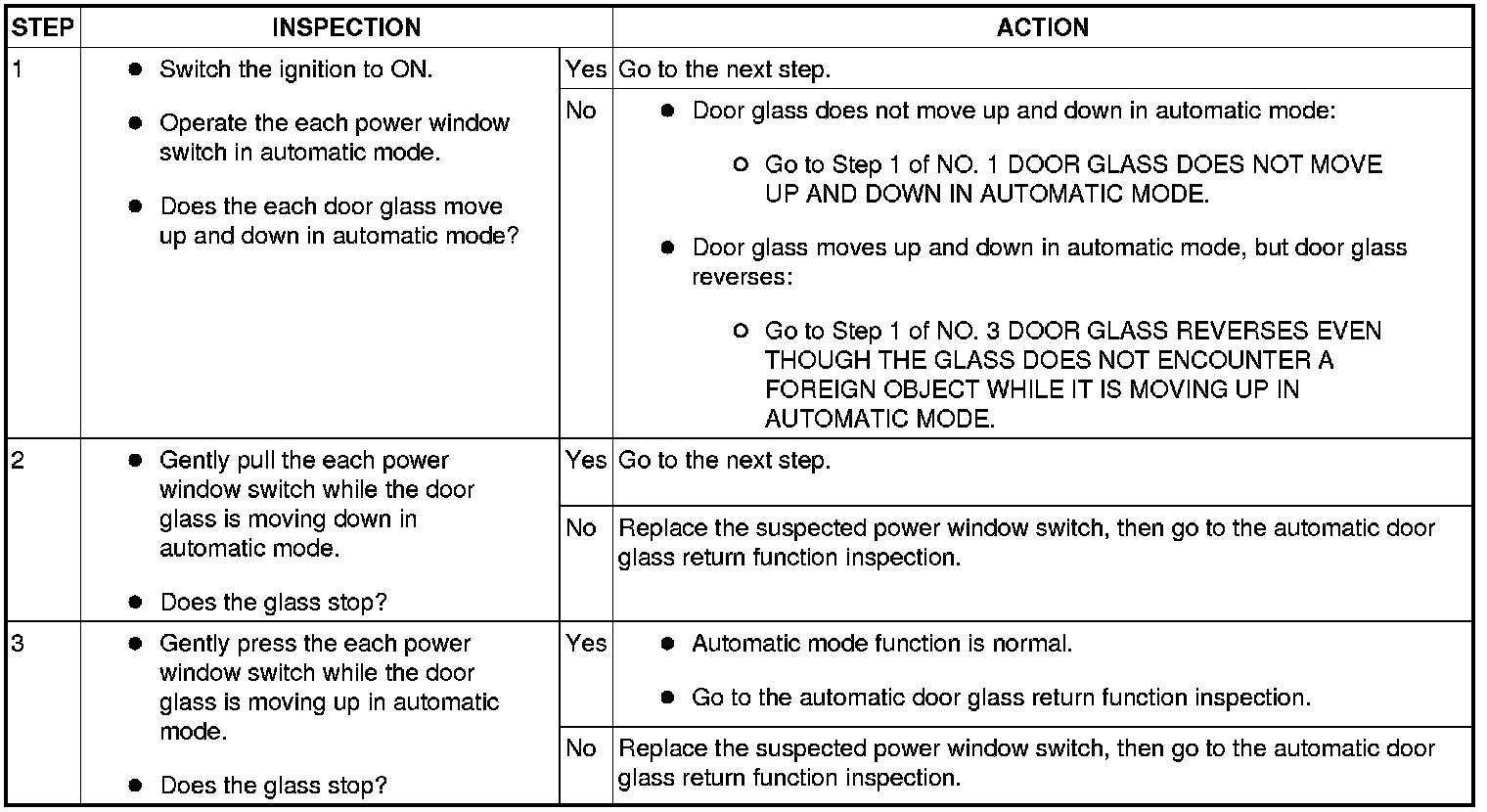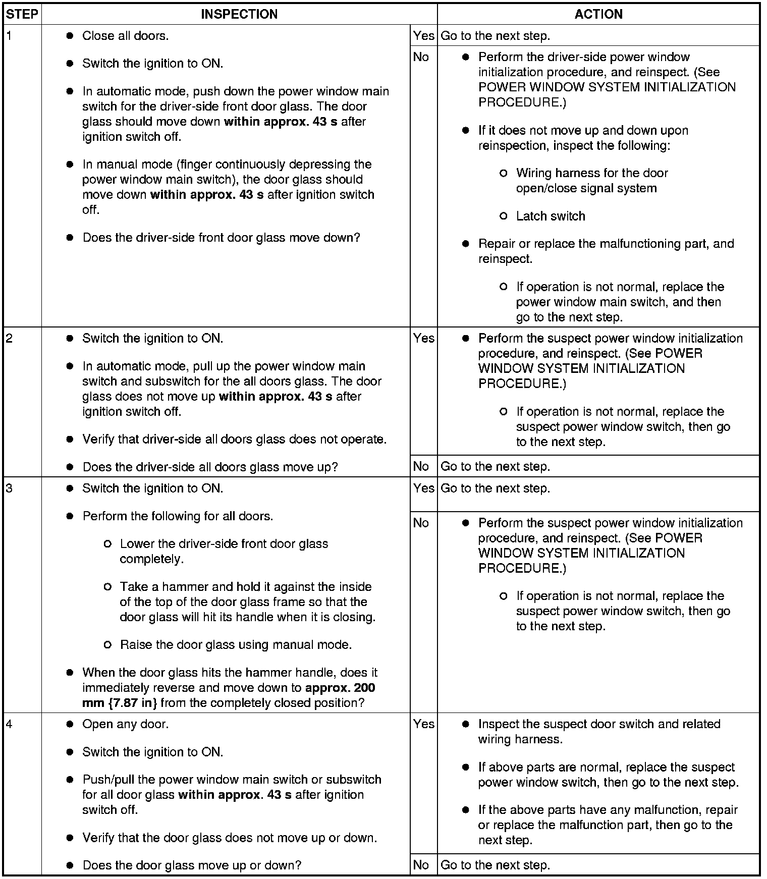 BASIC POWER WINDOW SYSTEM INSPECTION [POWER WINDOW SYSTEMS (AUTO-OPEN/CLOSE FUNCTION)]