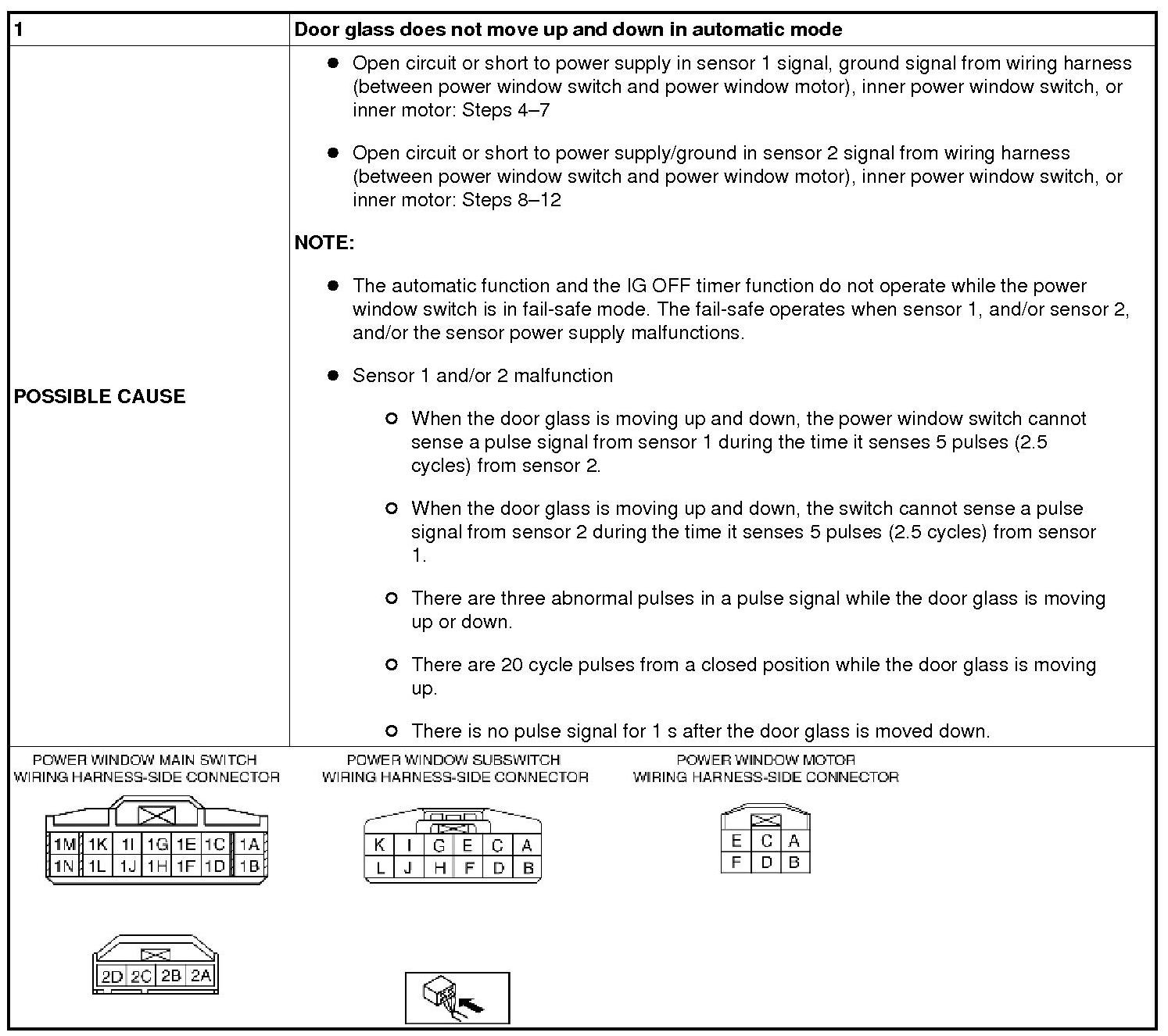 No. 1 Door Glass Does Not Move Up And Down In Automatic Mode