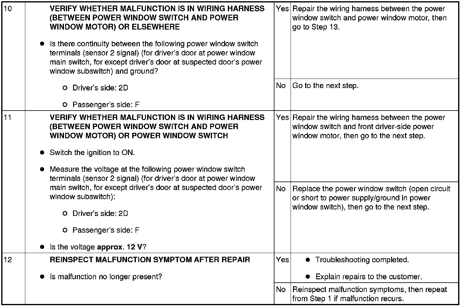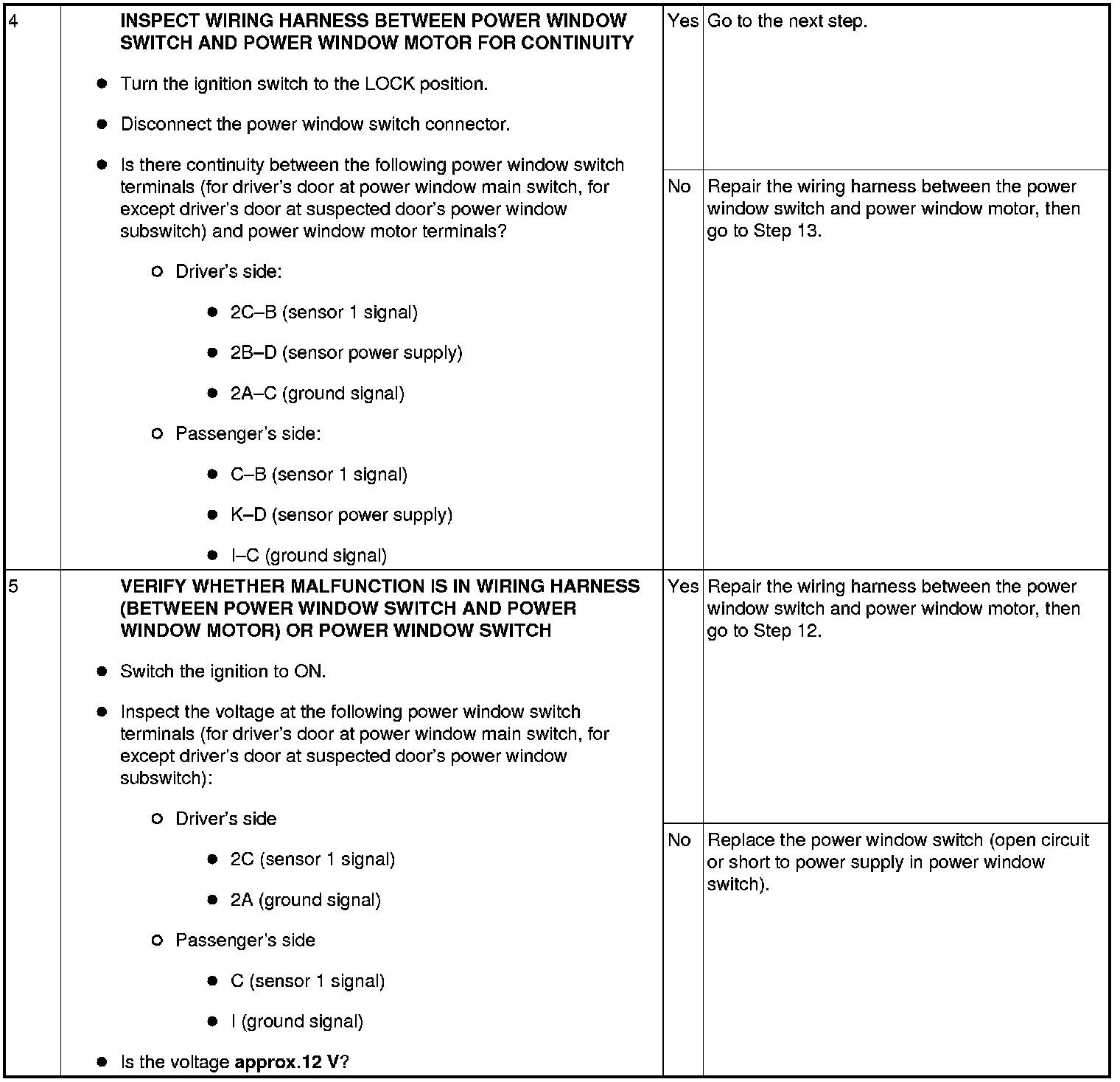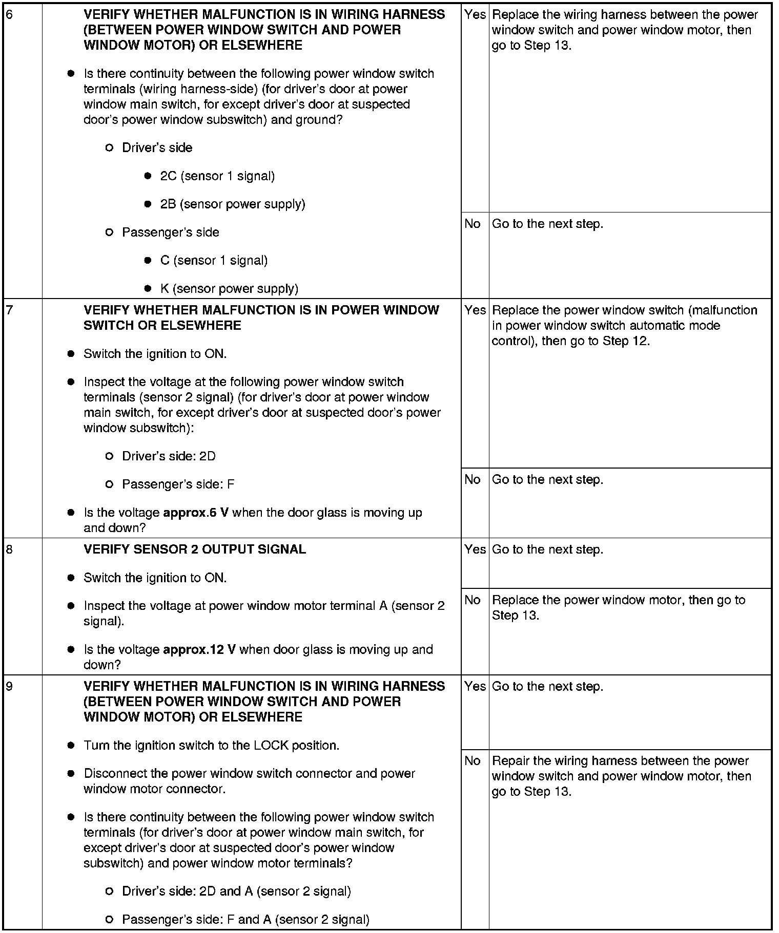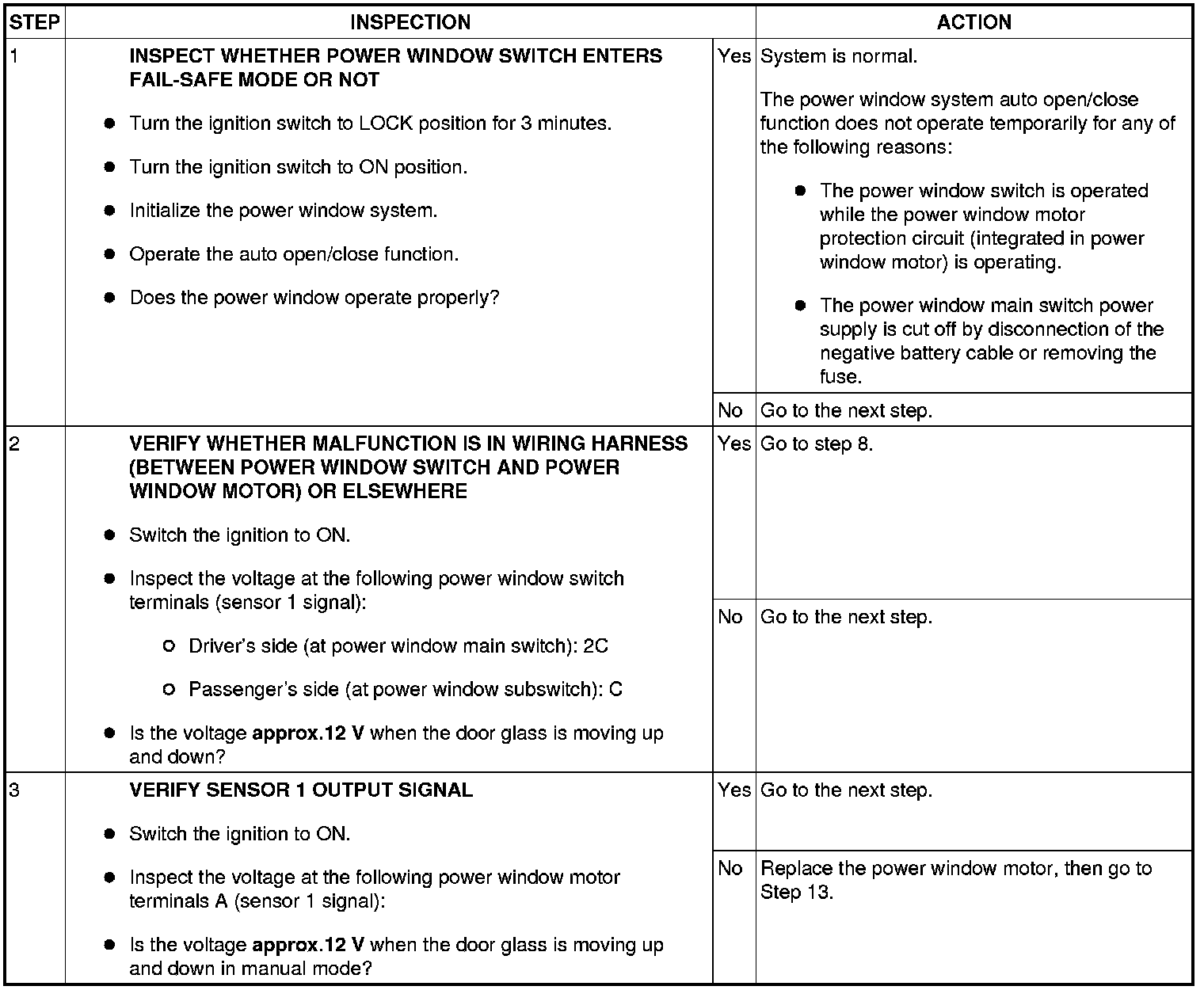 - Perform the following inspection for the power window system component parts of windows where the door glass cannot be operated automatically.