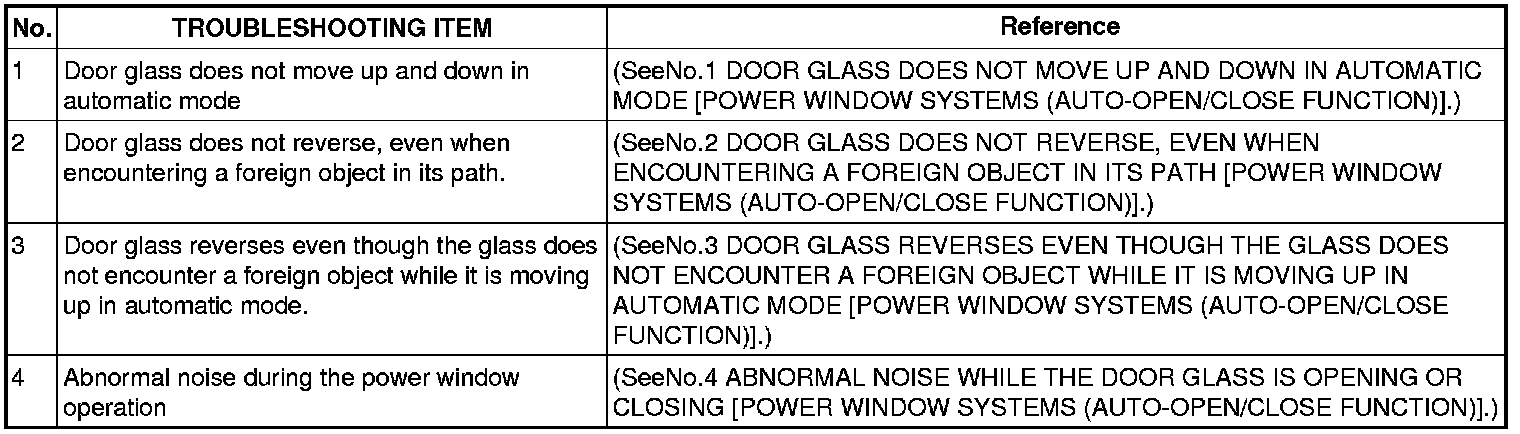 SYMPTOM TROUBLESHOOTING CHART [POWER WINDOW SYSTEMS (AUTO-OPEN/CLOSE FUNCTION)]