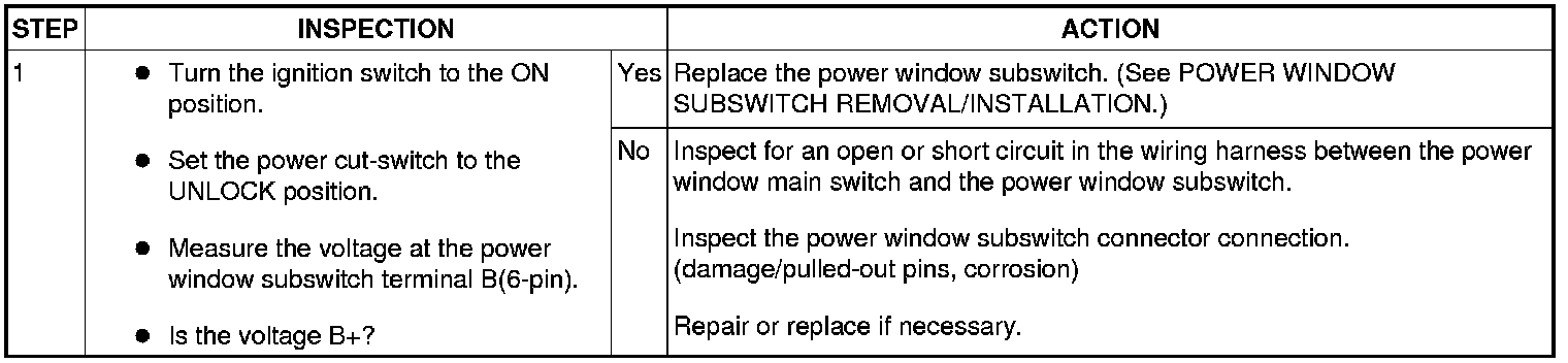 No. 3 All Power Windows Other Than Driver's Side Do Not Operate Using The Power Window Subswitch