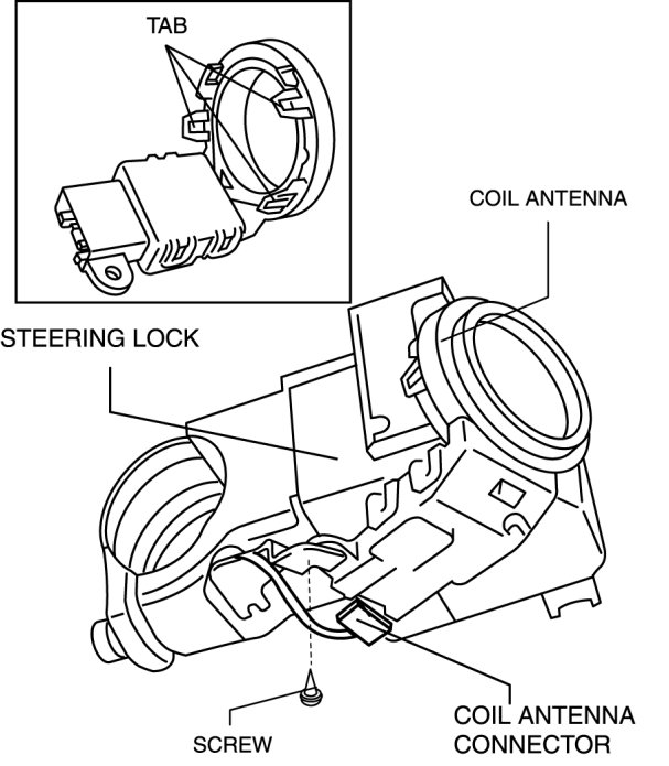5. Detach the coil antenna hooks and remove the coil antenna from the steering lock.