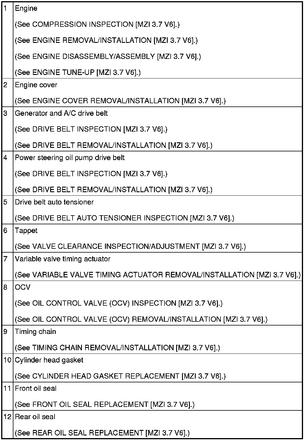 ENGINE LOCATION INDEX [MZI 3.7 V6]