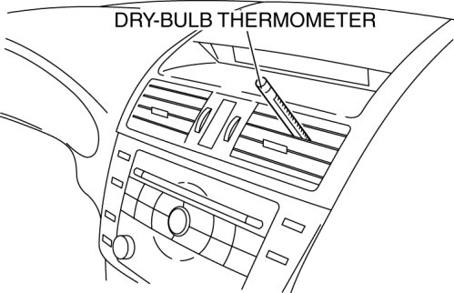 2. Place a dry-bulb thermometer in the passenger-side center ventilator outlet.