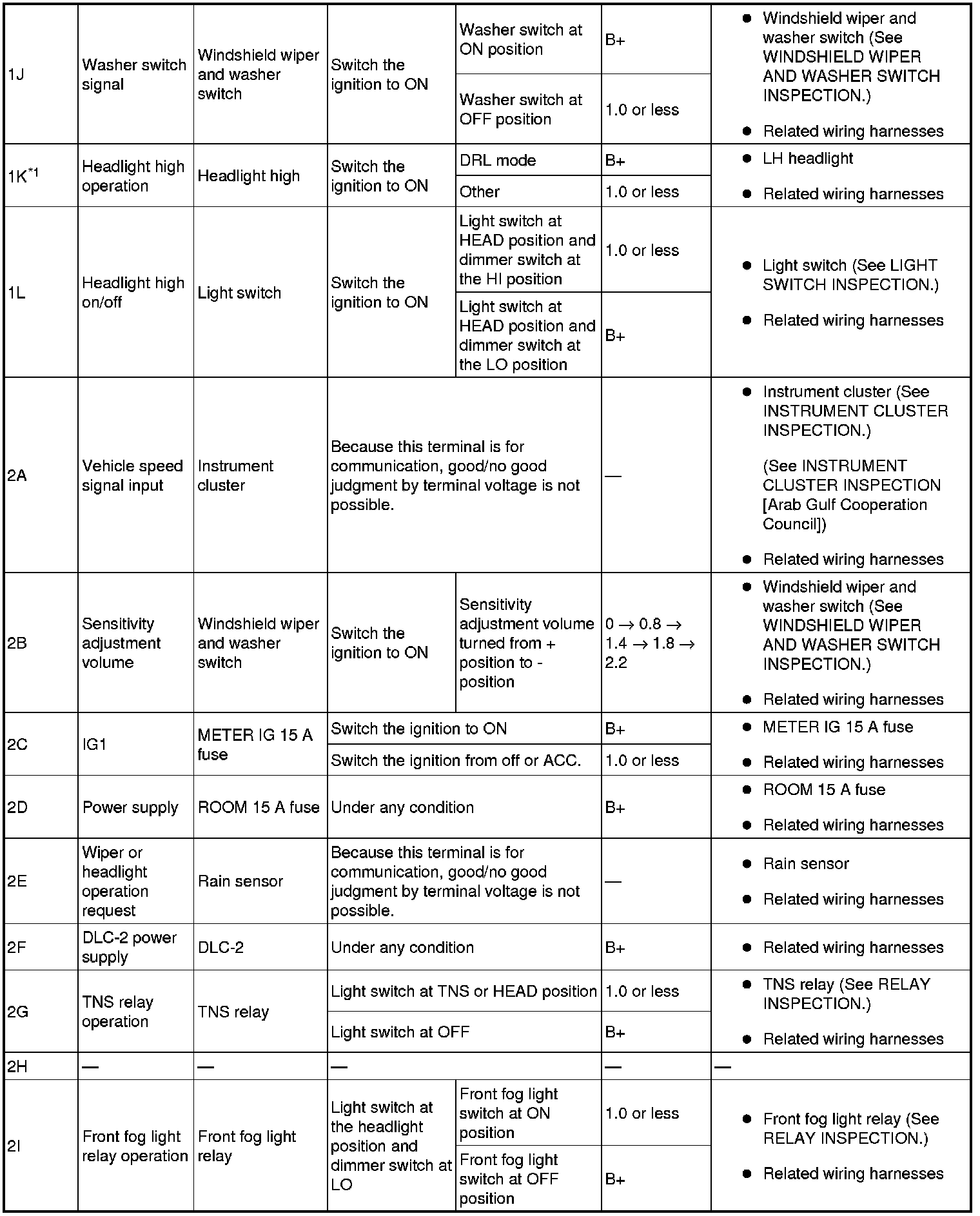 Auto Light/Wiper Control Module Inspection