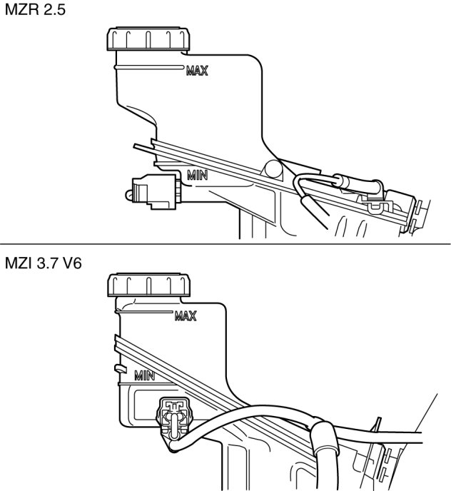 level is below the MIN mark, add brake fluid.