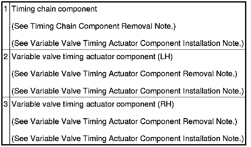 5. Remove the variable valve timing actuator, camshaft timing chain and the exhaust camshaft sprocket of the LH bank as a single unit using the appropriate tools.