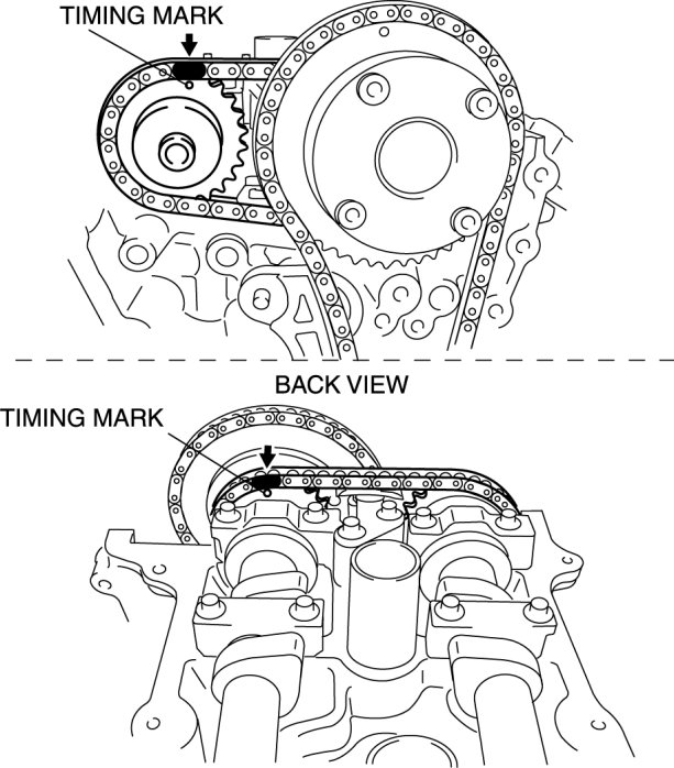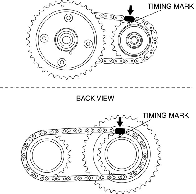- When the timing chain is replaced with a new one, mark the new timing chain at the same positions as the removed timing chain.