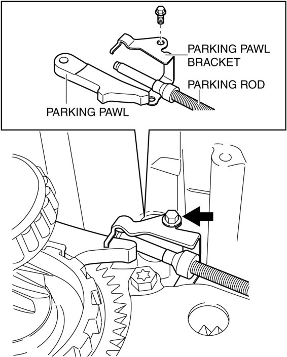 - When installing the pawl return spring to transaxle case, install the parking pawl side of the spring, then install the parking pawl shaft.